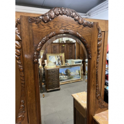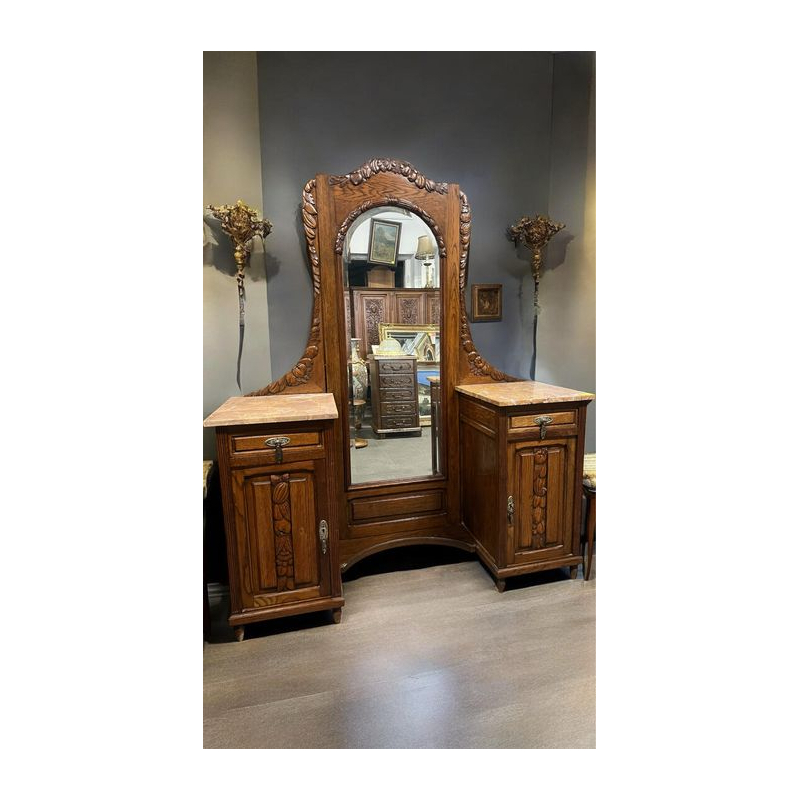 Mebel wykonany z drewna, z rzeźbionymi detalami charakterystycznymi dla stylu art nouveau.