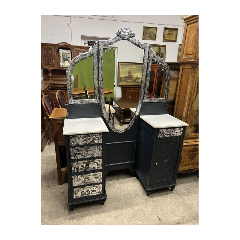 W sprzedaży toaletka w stylu secesyjnym z efektownym, trójdzielnym lustrem i piękną, dekoracyjną linią charakterystyczną dla epoki.