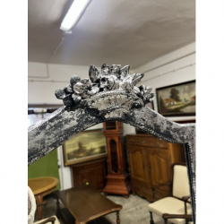 Mebel został odświeżony i pomalowany na elegancką, głęboką czerń, którą podkreślają stylowe, srebrne zdobienia.