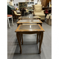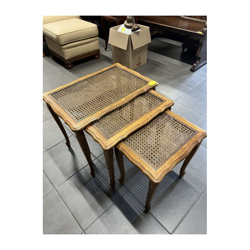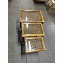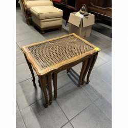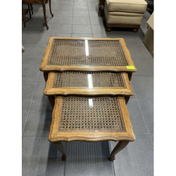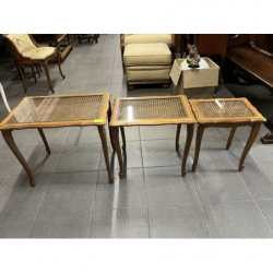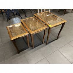 Zestaw trzech stylowych stolików ludwikowskich z rafią.
