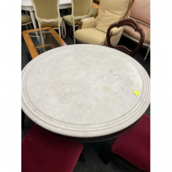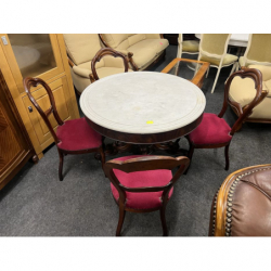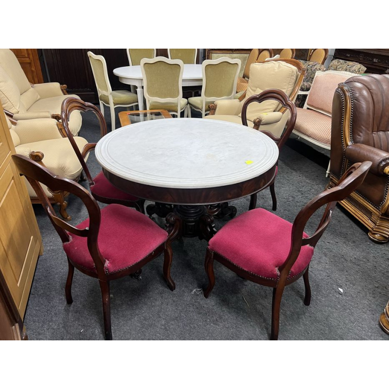 Stoł okragły z marmurowym blatem na rzeźbionej nodze z 4 krzesłami/Rat