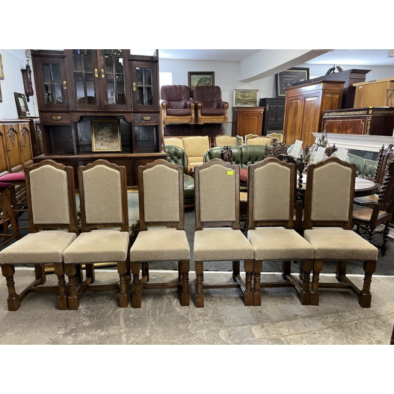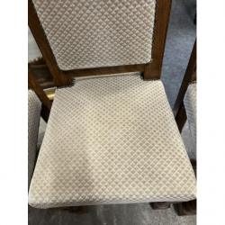 Przedmiotem sprzedaży są solidne, tapicerowane drewniane krzesła w zestawie 6 sztuk.