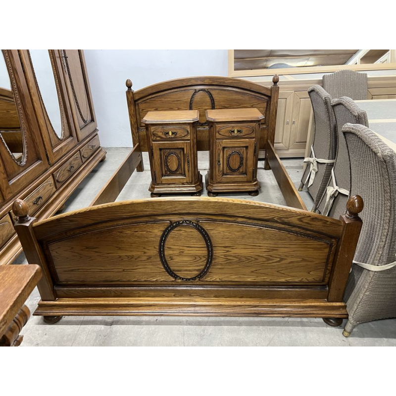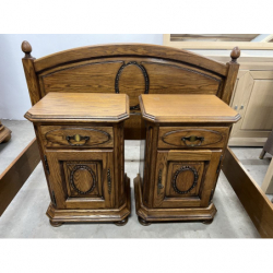 Przedmiotem sprzedaży jest solidne, drewniane łóżko z dwiema szafkami nocnymi.