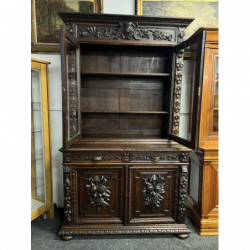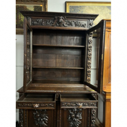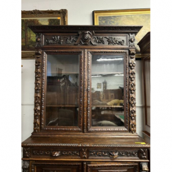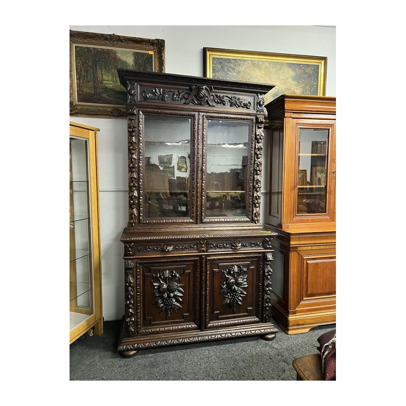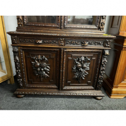 Przedmiotem sprzedaży jest wyjątkowy dwuczęściowy kredens bogato rzeźbiony.