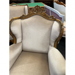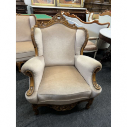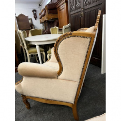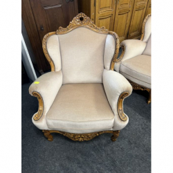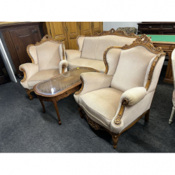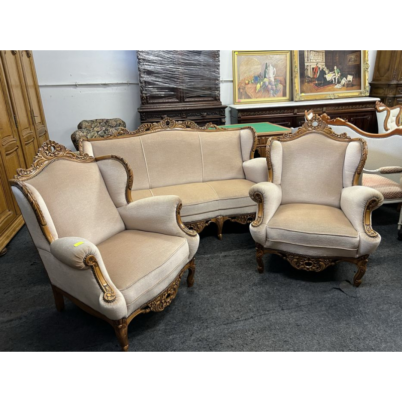 Przedmiotem sprzedaży jest stylowy, używany zestaw wypoczynkowy w stylu ludwika, składający się z kanapy i dwóch foteli.