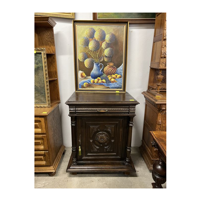 Przedmiotem sprzedaży jest drewniana rzeźbiona szafka.
