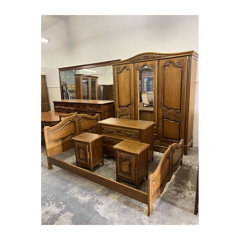 Przedmiotem sprzedaży jest bardzo ładna sypialnia dębowa na którą składa się: szafa 3-drzwiowa, komoda, łóżko z szafeczkami oraz komoda.
