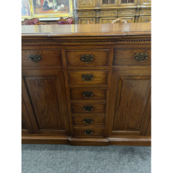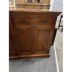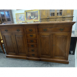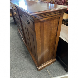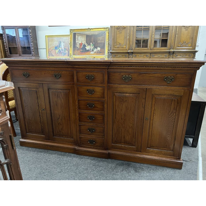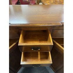 Solidna, dębowa komoda z szufladami i drzwiami.
