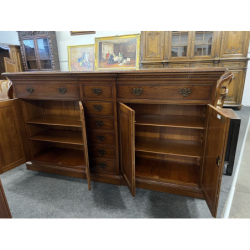 Posiada charakterystyczne rzeźbione zdobienia i mosiężne uchwyty.