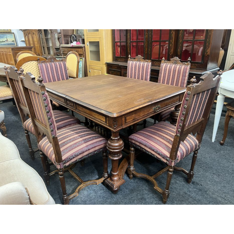 Przedmiotem sprzedaży jest drewniany stół eklektyczny z 6 krzesłami.